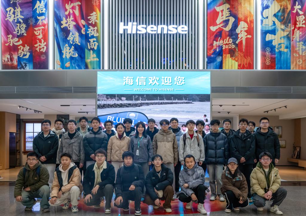 点击:为搭建校企协同育人桥梁,让青年学子近距离感受现代制造业的智能化变革,见证理论知识向实践生产力的转化,1月12日,“嵙大•海信班”学员与信嵙俱乐部成员代表,在海信班校内班主任、h视频学工办主任樊玉华的带领下,走进海信信息产业园,开启了一场探秘智造前沿、对话未来产业的科技之旅。
